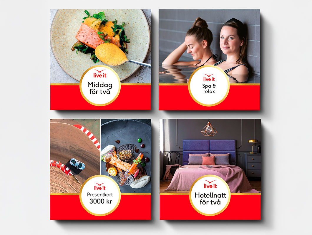 Uppdraget var både kreativt och komplext: att rebranda Live Its ikoniska box för att spara miljö och material. Projektet krävde lösningar som fungerade i retail, där byten av förpackningar innebär många praktiska och logistiska insatser från flera håll. Detta projekt sträckte sig dessutom ännu längre, då det behövdes designas nya sleeves till förpackningarna då de gamla inte längre passade, värdebevisen och presentkorten inuti, samt informationsbroschyrerna till alla produkter behövde dessutom uppdateras med nytt format, text & bild.